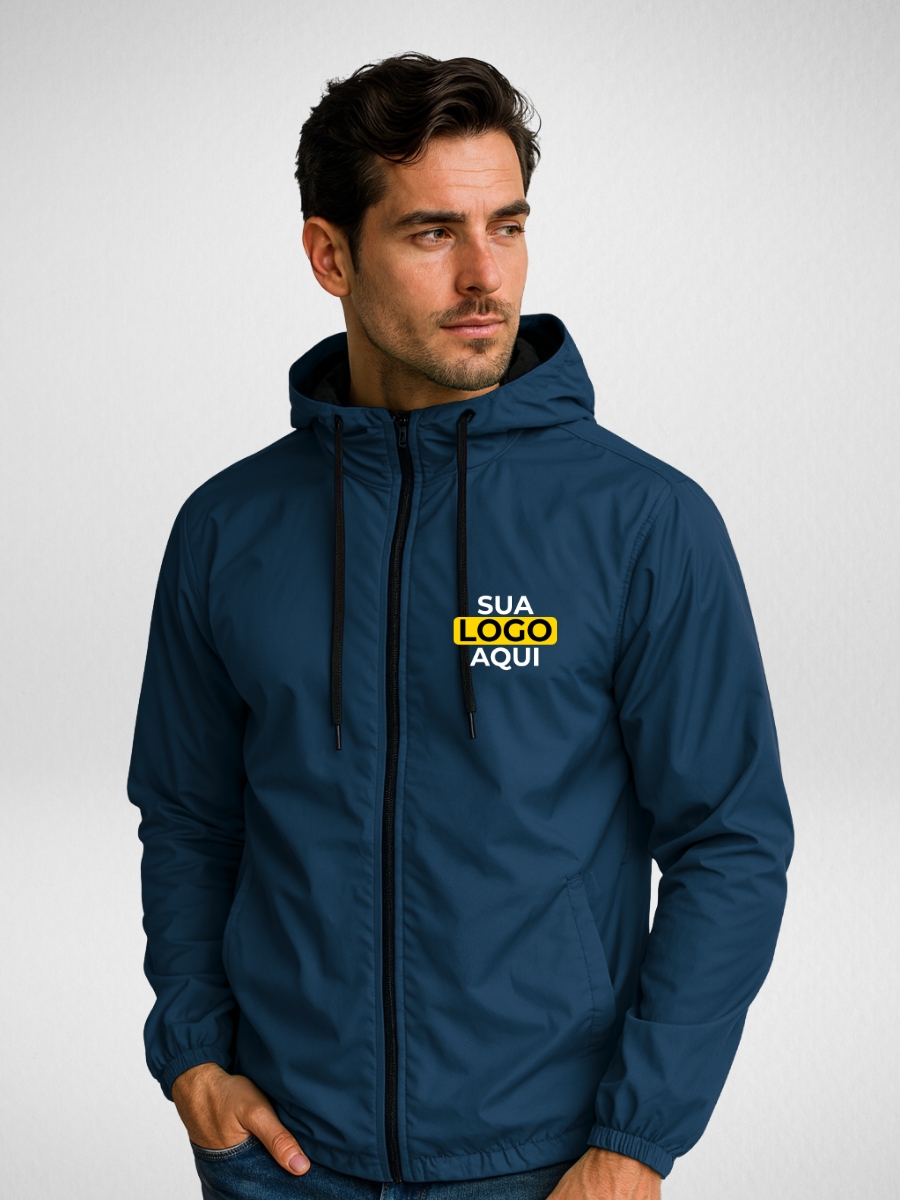 Jaqueta Corta Vento Masculina Forrada Personalizada Azul-petróleo