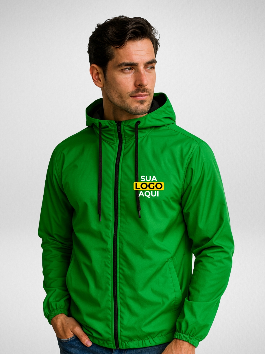 Jaqueta Corta Vento Masculina Sem-forro Personalizada Verde-neon
