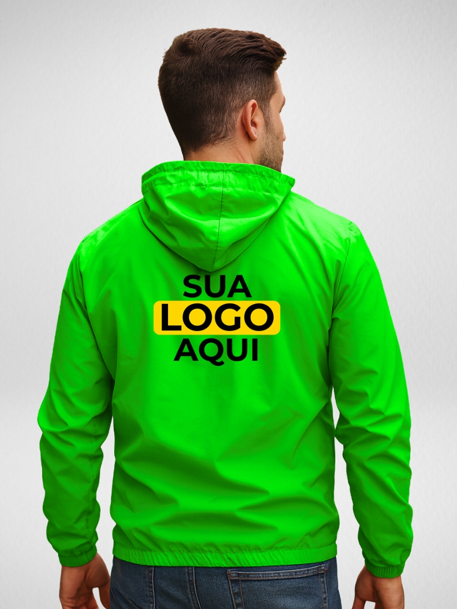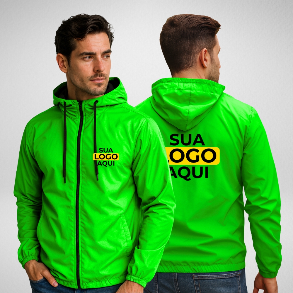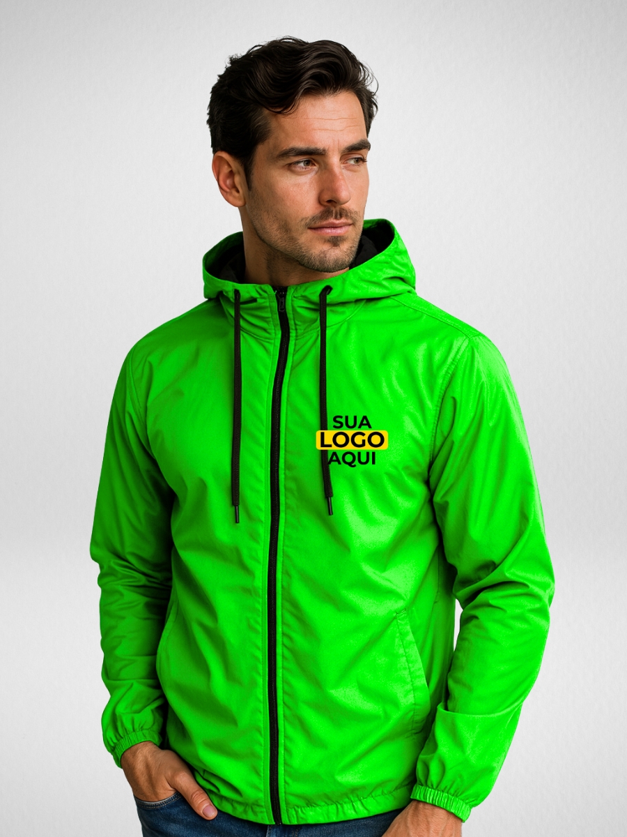 Jaqueta Corta Vento Masculina Sem-forro Personalizada Verde-neon