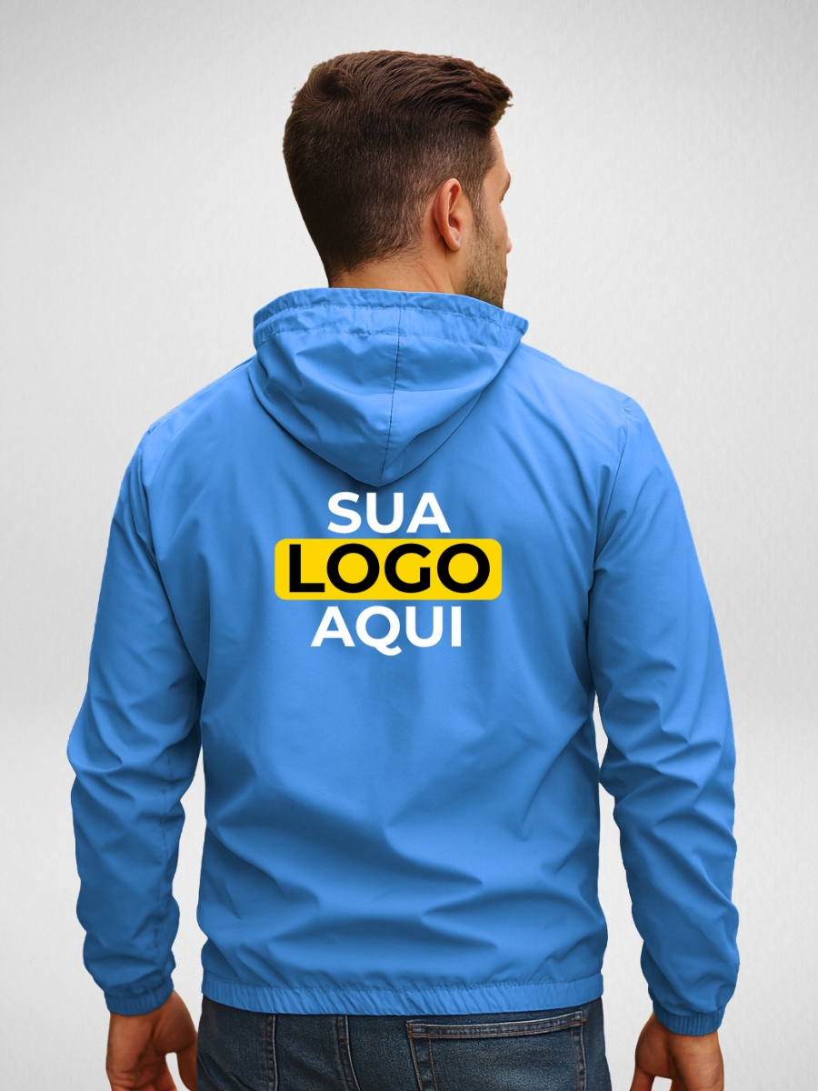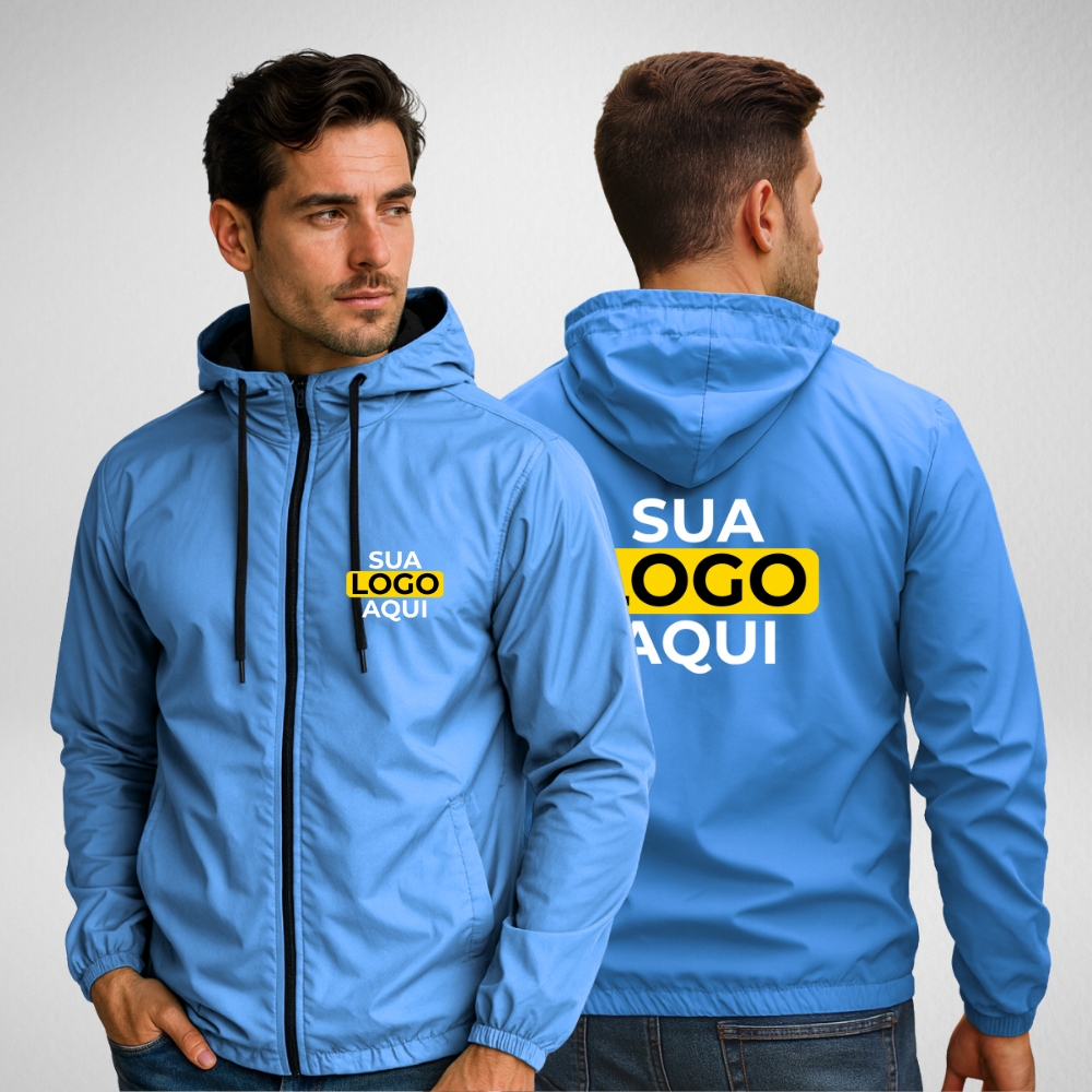 Jaqueta Corta Vento Masculina Sem-forro Personalizada Azul-claro