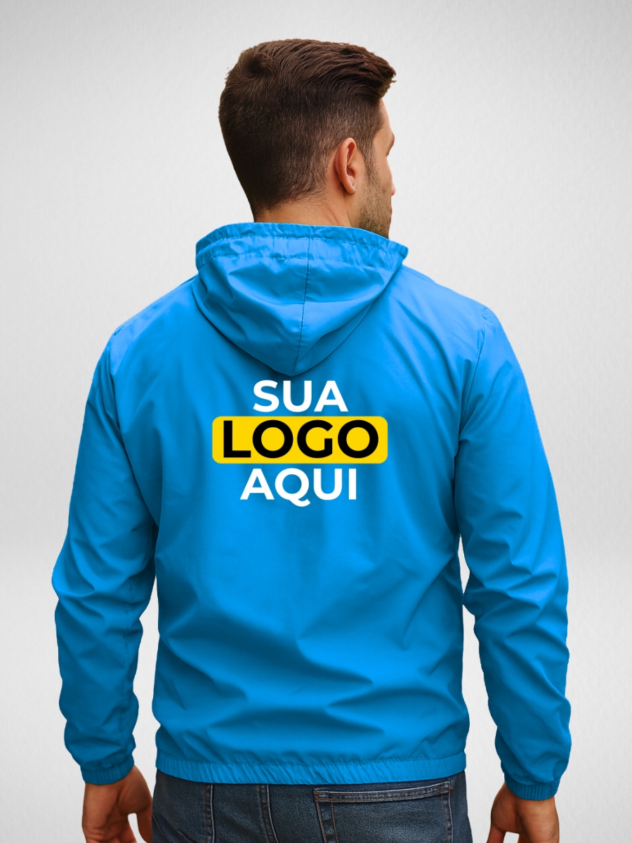 Jaqueta Corta Vento Masculina Sem-forro Personalizada Azul-turquesa